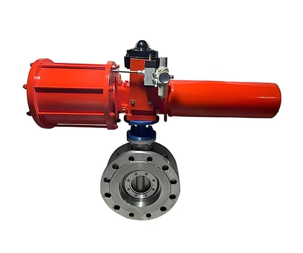 This valve features a triple eccentric (three-offset) design, which ensures zero leakage and reduces wear on the sealing surface, extending the service life. The hard-sealing mechanism, typically made of stainless steel or alloy, provides excellent durability and corrosion resistance, even in aggressive media. Pneumatic actuators enable rapid and automated operation, making the valve suitable for processes that require precise flow control and automation.